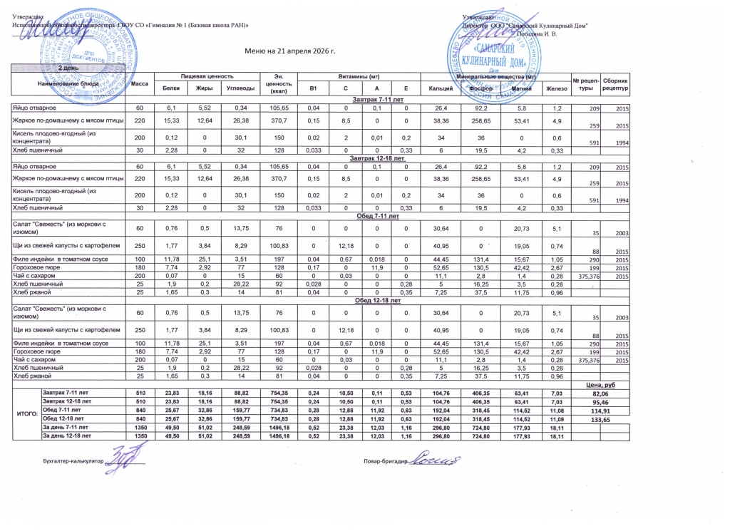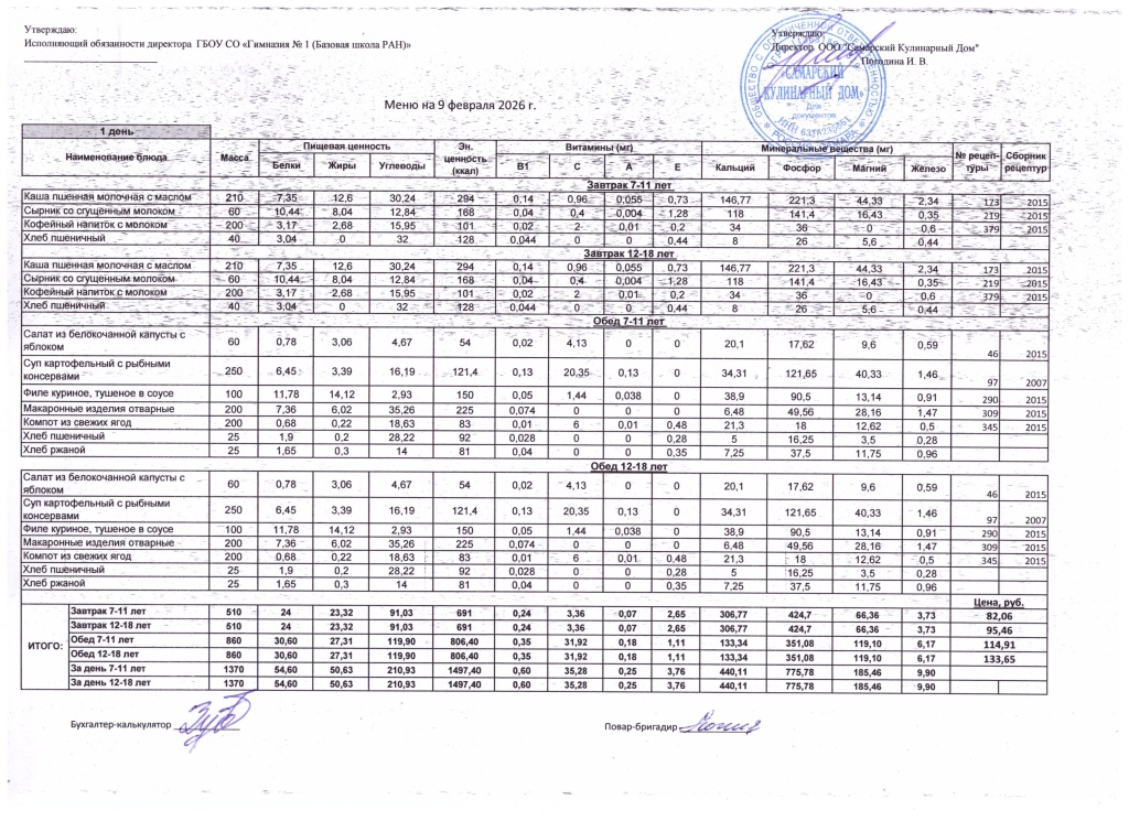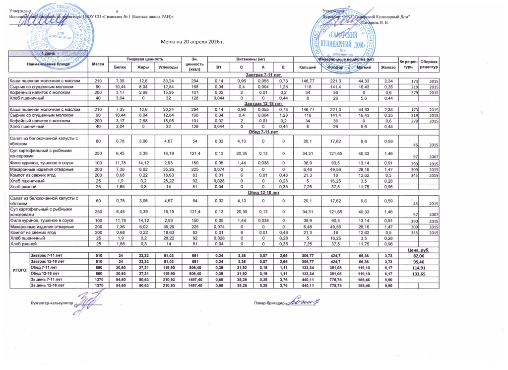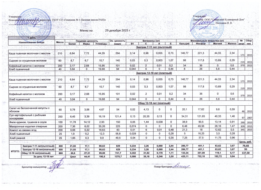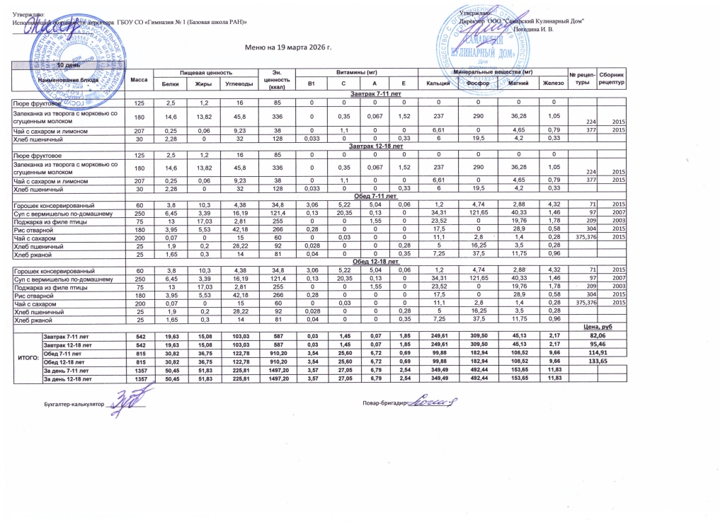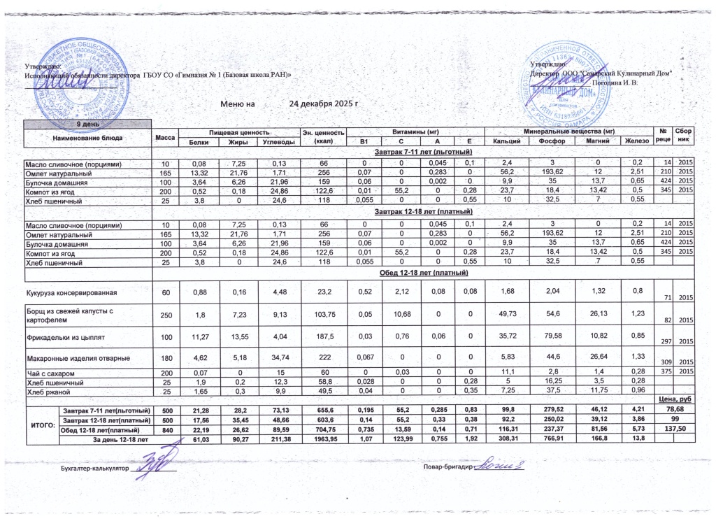 Лист ознакомления родителей с цикличным 12 ти дневным меню