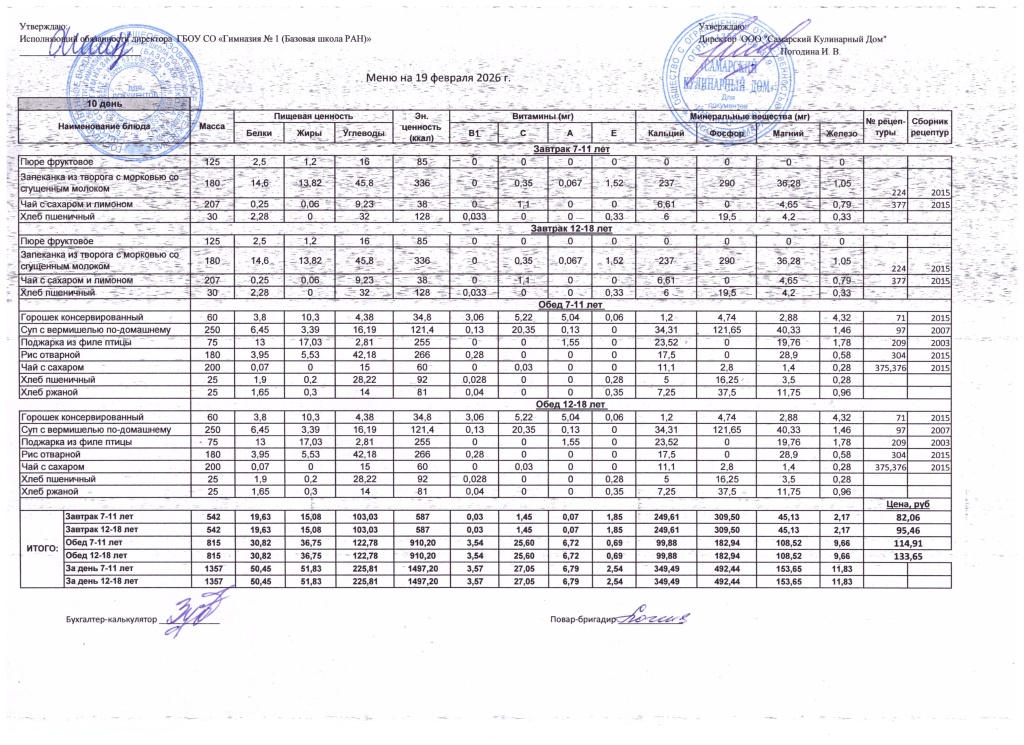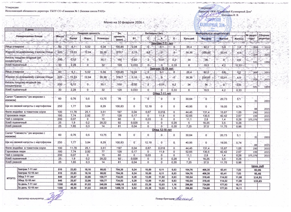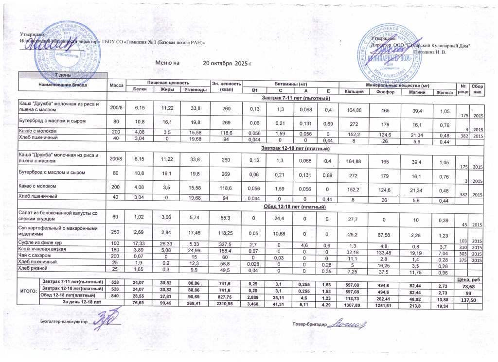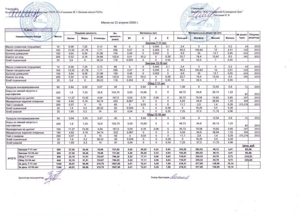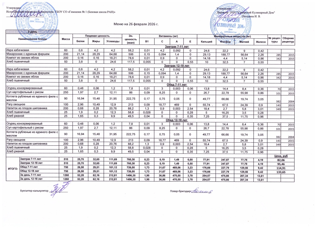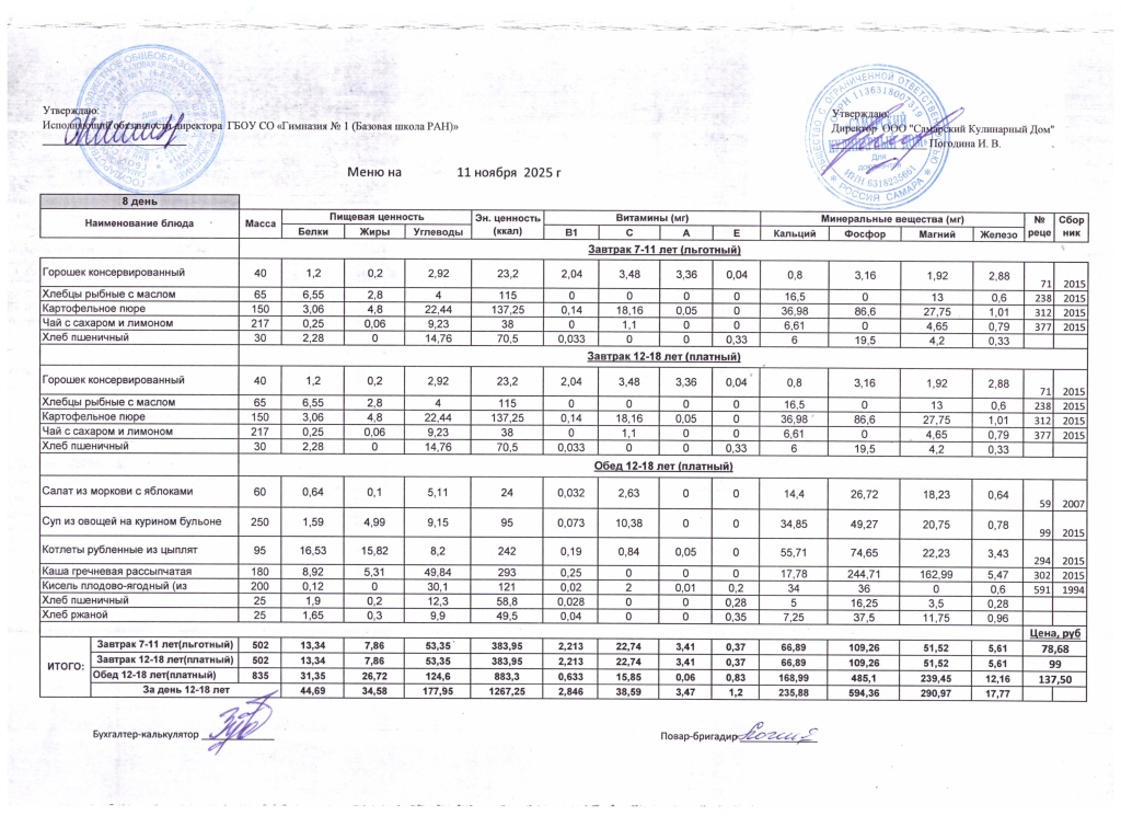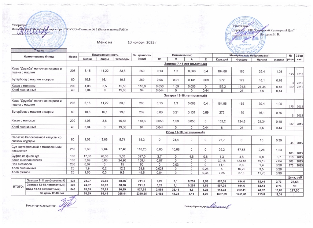 Лист ознакомления родителей с цикличным 12 ти дневным меню