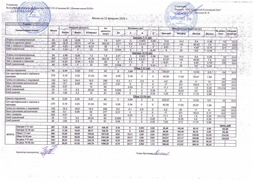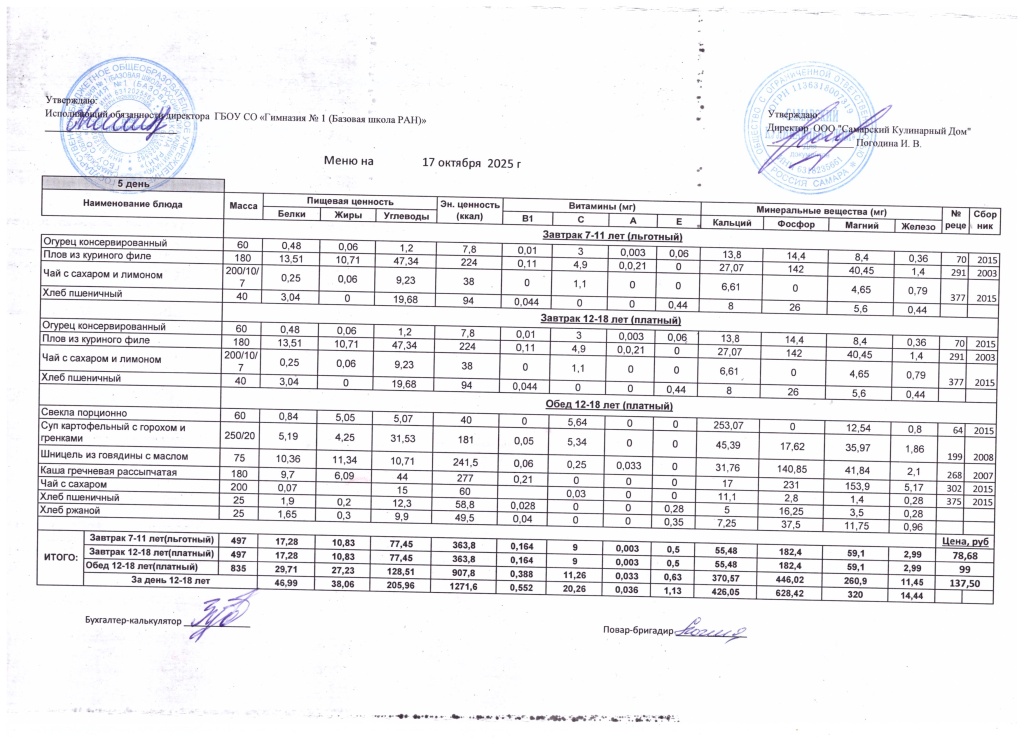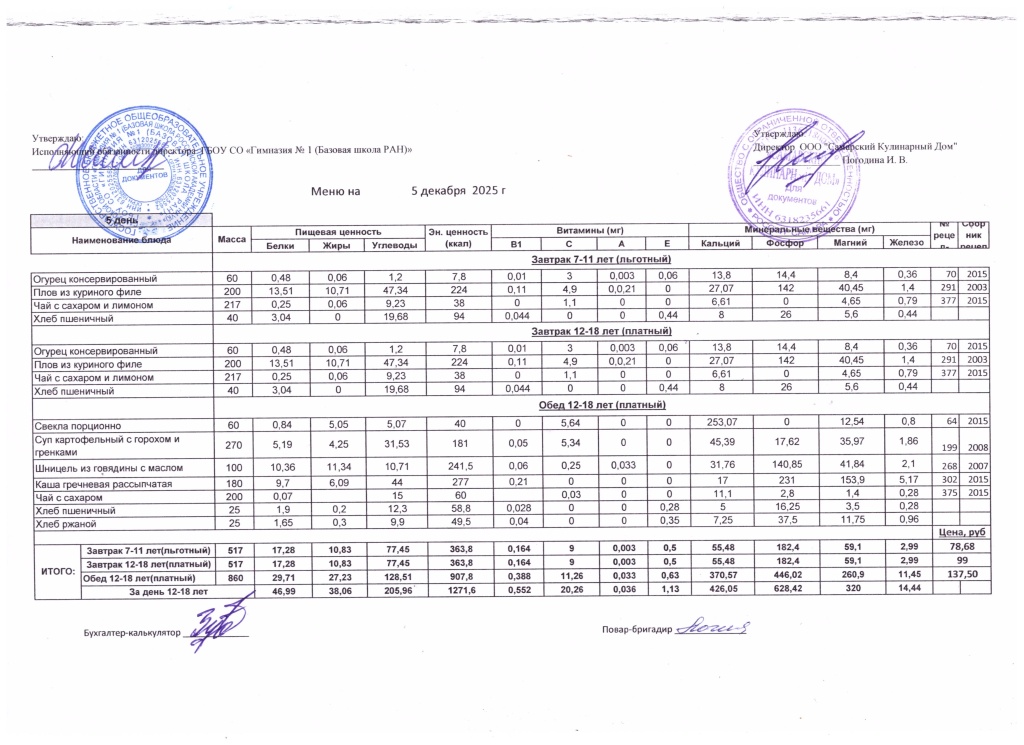 Примерное 12-ти дневное меню двухразового горячего питания обучающихся 5-11 кл