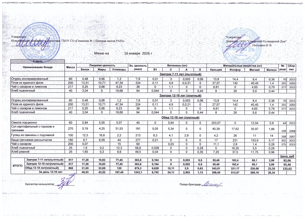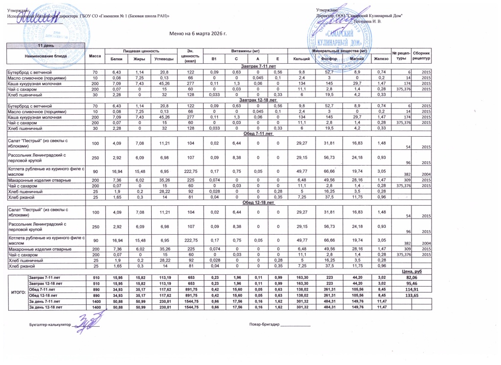 Примерное 12-ти дневное меню двухразового горячего питания обучающихся 5-11 кл