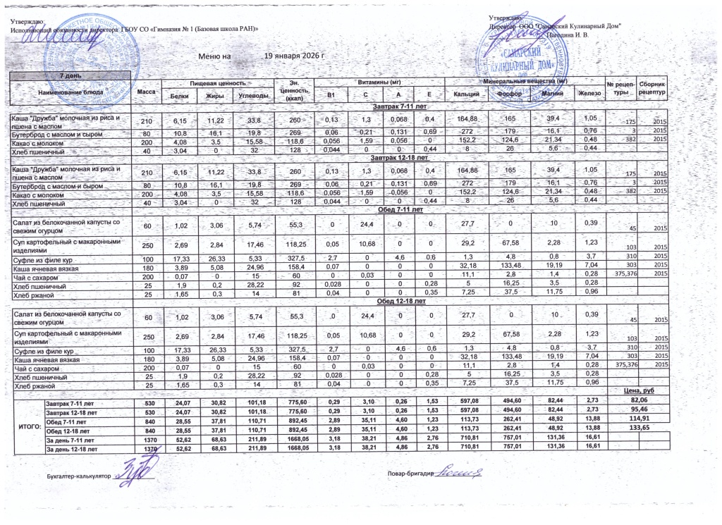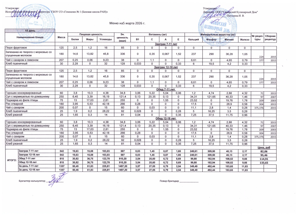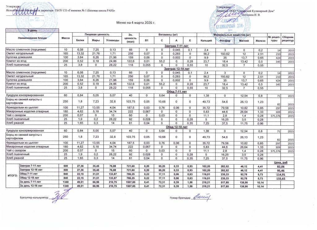 Лист ознакомления родителей с цикличным 12 ти дневным меню